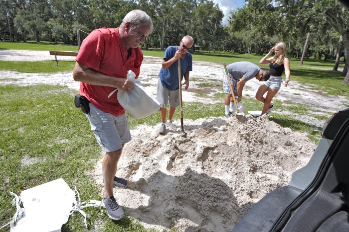 At a county park in Plant City east of Tampa, there was a steady stream of people shoveling sand into bags Friday morning. Terry Smith, 67, filled 10 bags with a neighbor from StrawBerry Ridge Village, a 55+ community of manufactured homes in suburban Hillsborough County.