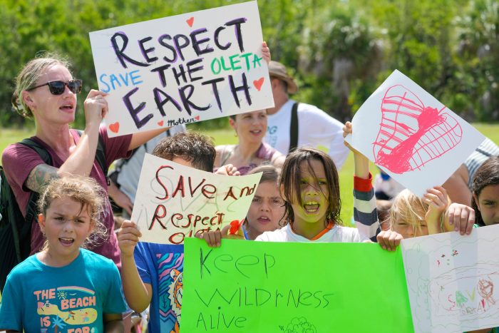 The Republican governor’s Department of Environmental Protection unveiled the development plans in August for nine state parks and scheduled only a single hour of public hearings before moving the projects forward. Hundreds of people attended protests at the parks and in Tallahassee, many carried signs with slogans such as “Save Don’t Pave” and “Parks Over Profit.”