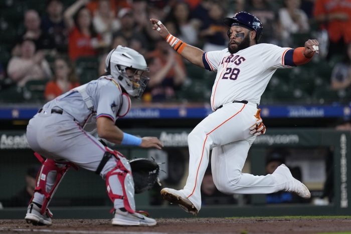 Loperfido tripled when his fly ball sailed just out of reach of Chisholm with no outs in the fourth. He scored when Bregman reached on a fielder’s choice that made it 6-0.