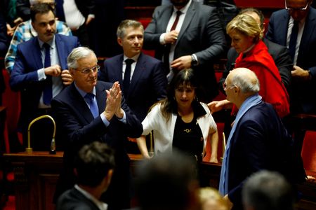 LONDON (Reuters) -The risk premium on French bonds dropped and bank stocks rallied on Thursday after a widely expected no-confidence vote toppled Prime Minister Michel Barnier’s government, with focus turning to what a new government might look like. Barnier resigned and President Emmanuel Macron is hunting for a new prime minister, a day after opposition to Barnier’s 60-billion euro ($63 billion) belt-tightening effort led far-right and leftist lawmakers to vote his government out.