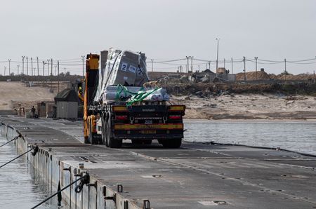 WASHINGTON (Reuters) – A floating U.S. military pier off Gaza has resumed bringing humanitarian aid into the enclave after being suspended for two days because of rough seas due to weather, three U.S. officials said on Tuesday.