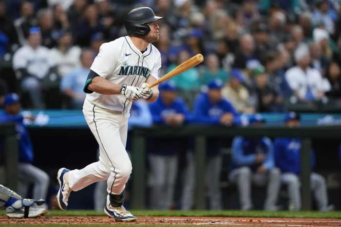 Raley’s second homer of the season traveled an estimated at 432 feet and came after Cal Raleigh doubled on the first pitch of the second inning from Kansas City starter Brady Singer. Raley also appeared to break – or have come unscrewed — the celebratory trident used by the Mariners to celebrate home runs.