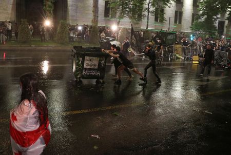 TBILISI (Reuters) – Georgia’s parliament on Wednesday approved the second reading of a bill on “foreign agents” that has been criticised as Kremlin-inspired, as police fired tear gas and stun grenades to clear a large crowd of protesters opposed to the draft law.