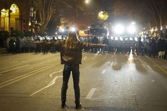 Mass protests in Georgia fueled by the governing party’s decision to suspend negotiations on joining the European Union entered a second week on Thursday, with police cracking down on demonstrators with increasing force.