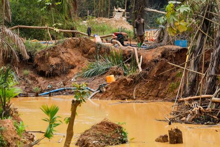 PRESTEA-HUNI VALLEY, Ghana (Reuters) – At an unlicensed gold mine in Ghana, men in t-shirts, shorts and rubber boots wade through pools of muddy water laced with mercury, pull out rocks with bare hands and operate a rickety sluice as they search for the precious ore.