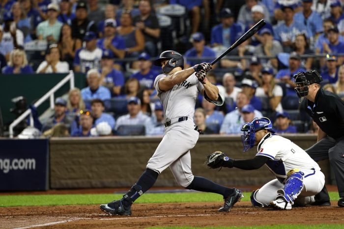 “He’s done it throughout his career with us,” Yankees manager Aaron Boone said. “I thought that at-bat off Bubic was just phenomenal. I think he went up there looking to do damage, looking to do just that.”