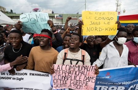 KIBATI, Democratic Republic of Congo (Reuters) – Families huddled near the line of small coffins in eastern Democratic Republic of Congo, all mourning the children and others killed in a rocket attack, many shouting out accusations against the rebels they said launched the assault.