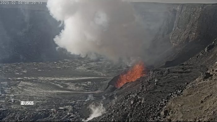This marks the eruption’s eighth episode. Small, sporadic spatter fountains began Sunday, which grew more intense, the observatory said. The fountains grew from 50 feet (15.24 meters) high to 250 feet (76.2 meters) high in an hour on Monday night.
