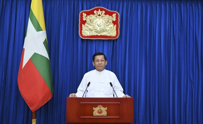In Tuesday’s brief broadcast, Min Aung Hlaing said the ruling military council will only follow the framework of its existing cease-fire agreement for peace and appealed to the ethnic armed groups to negotiate their issues through dialogue.
