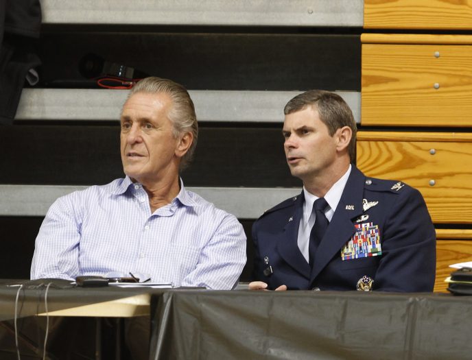 Riley and the Heat created what the team has called the “HomeStrong” initiative 20 years ago, and the team has routinely welcomed returning soldiers and first responders to Miami games over those two decades, plus further honor them with an on-court pregame ceremony. Riley also took the team’s training camp in 2010 to military bases in northwest Florida.