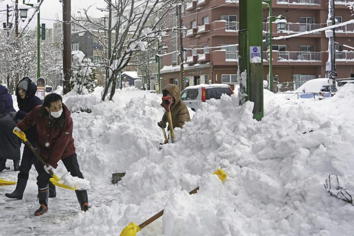 TOKYO (AP) — Record-breaking snowfall fell on Japan ‘s northern main island of Hokkaido, disrupting traffic, causing airport closures and delaying deliveries on Tuesday.