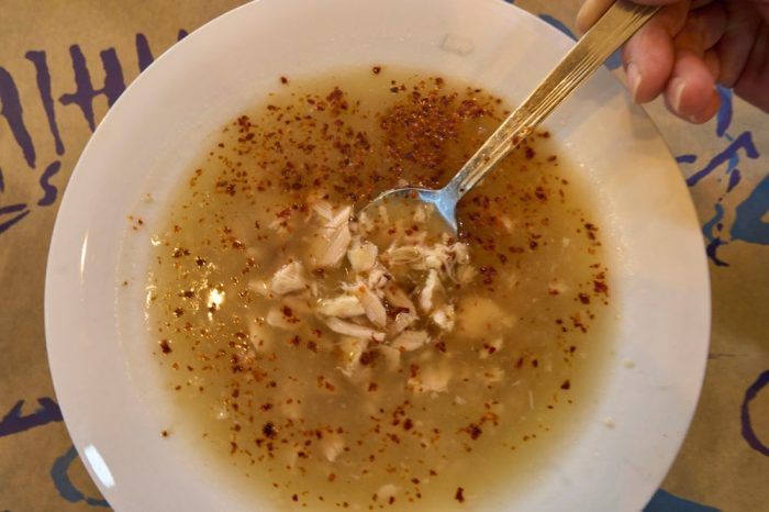 Dozens of patrons show up at Tsarouhas’ restaurant at all hours — particularly at the crack of dawn — to enjoy patsa as many say the soup eases the stomach after a night of heavy drinking. It’s usually garnished with a sprinkle of seeds and a dash of hot peppers.