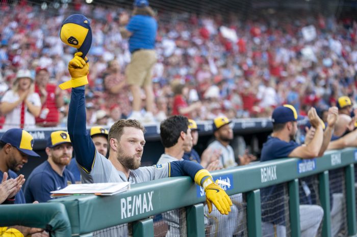 PHILADELPHIA (AP) — Rhys Hoskins homered for the Milwaukee Brewers in his return to Citizens Bank Park, but David Dahl went deep in his Philadelphia debut to back Zack Wheeler and the Phillies in a 3-1 victory Monday night. In the opener of a three-game series between National League division leaders, Edmundo Sosa and Johan […]