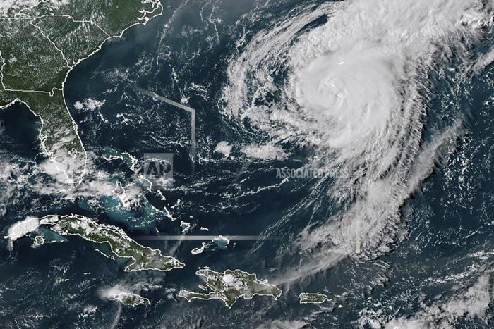 The wide category 1 storm was directly over the the wealthy territory at 6 a.m. Saturday, with maximum sustained winds of 85 mph (140 kph). The U.S. National Hurricane Center warned of strong winds, a dangerous storm surge and significant coastal flooding.