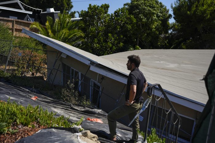 For now, his family plans to move into the pool house in the back that is less at risk of falling down the hillside.