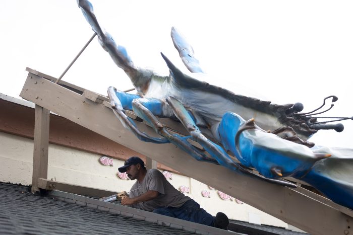 Downed cables and orange construction cones could be found along the road linking the touristy strand’s seafood shacks to the west end’s colorful short-term rentals. Crews from Houston-area utility CenterPoint stood atop lifts, sweating as they restored line after line.