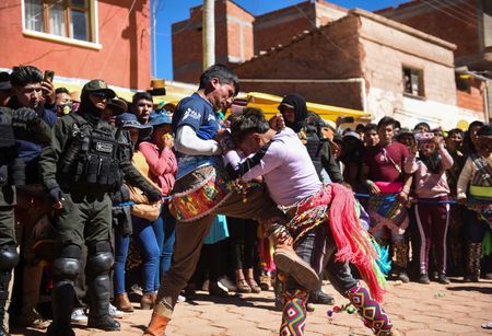 SAN PEDRO DE MACHA, Bolivia (Reuters) – In the high altitude Bolivian town of San Pedro de Macha, hundreds of Indigenous Quechua men and women take to the streets for a ritual dance and combat known as the “Tinku”, involving hand-to-hand combat between neighbors to settle disputes.