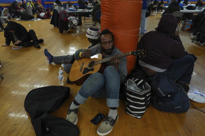 CINCINNATI (AP) — Tirrdell Byrd sat on the floor strumming his guitar as people milled about Over-The-Rhine Recreation Center, winter coats flung over folding chairs, belongings packed into shopping bags and wheeled totes, the smell of pizza lingering. A blind woman was helped to a drink of water by another woman, while nearby, people gathered […]