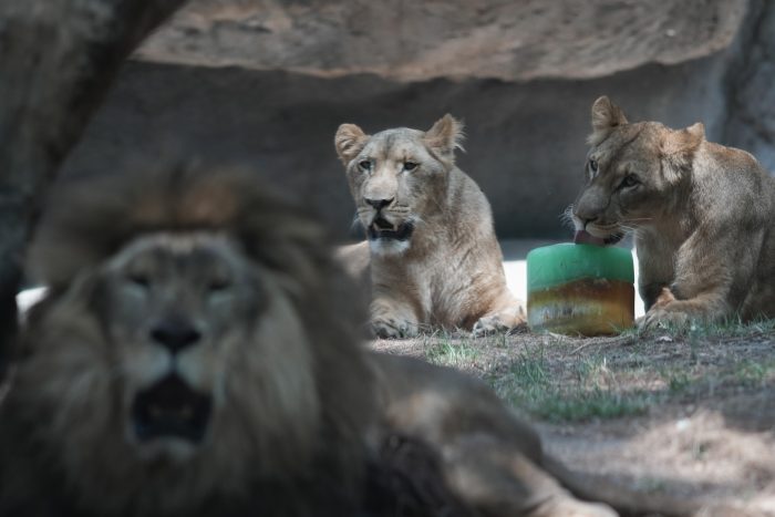 The lions at Mexico City’s Chapultepec zoo got a frozen treat of blood and animal bones mixed with water. Alberto Olascoaga, the head of the capital’s zoo, said the animals like it — and it helps hydrate them.