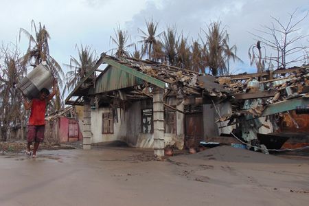 Roads and buildings on Tagulandang were blanketed in a thick layer of volcanic ash, and the roofs of some homes had collapsed, according a Reuters witness.