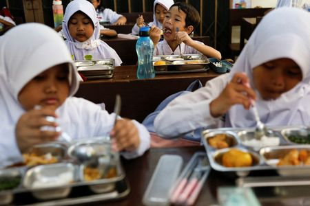 JAKARTA (Reuters) -Indonesia’s additional budget of 100 trillion rupiah ($6.14 billion) for its programme to give free meals to school children this year will add nearly 2 percentage points to the country’s growth, an aide to President Prabowo Subianto said on Friday.