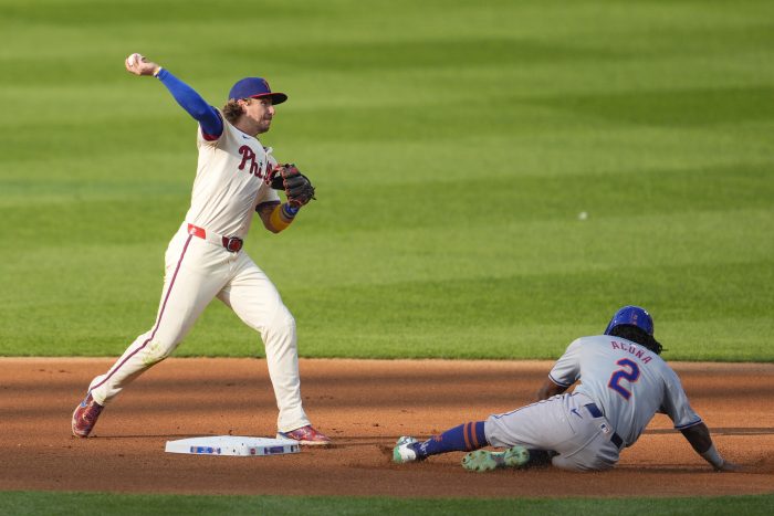 PHILADELPHIA (AP) — Luisangel Acuña, a younger brother of Atlanta Braves star Ronald Acuña Jr., had two hits in his major league debut with the New York Mets on Saturday. Luisangel Acuña was recalled from Triple-A Syracuse and started at shortstop in Philadelphia, batting ninth. He hit a leadoff single in the fourth inning against […]