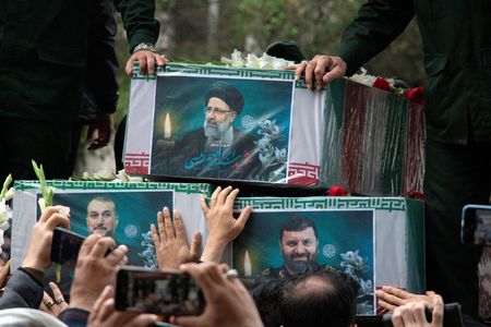 DUBAI (Reuters) – Thousands of Iranians turned out to mourn President Ebrahim Raisi in the city of Tabriz on Tuesday, after he was killed in a helicopter crash near the Azerbaijan border at the weekend along with his foreign minister and seven others.