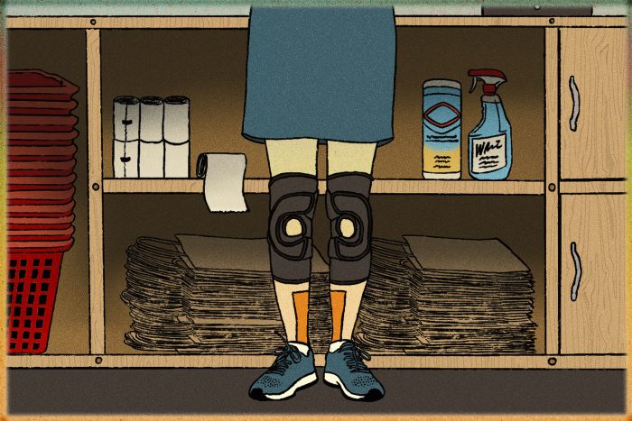 “The longer I’ve been at the job, I’ve started noticing knee issues, especially because we do a lot of bending down and standing back up when we’re shelving books and showing customers things and creating displays,” bookseller Bear Spiegel, 28, said. “Being able to have a stool available would be really useful just so I could rest my knees for a couple of minutes throughout the day while I’m doing things on the computer while I’m at the registers.”