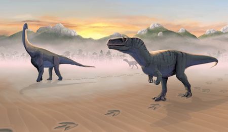 All meat-eating dinosaurs were part of a group called theropods. The ones that made the Isle of Skye tracks were part of a family called megalosaurs. One possibility is Megalosaurus, which lived about 100 million years before its distant relative Tyrannosaurus, measured about 20 feet (6 meters) long, walked on two legs and had a mouthful of large serrated teeth. It was one of the first dinosaurs discovered by scientists and, in 1824, became the first one to be given a name.