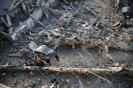 CAIRO (Reuters) -Israeli military strikes across the Gaza Strip killed at least 65 Palestinians overnight, including in a school sheltering displaced families, medics said, as Israeli tanks advanced in areas of Khan Younis in the south of the enclave.