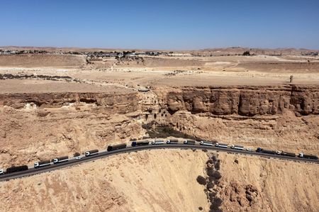 JERUSALEM (Reuters) -Israeli protesters blocked aid trucks headed for Gaza on Monday, strewing food packages on the road in the latest in a series of incidents that have come as Israel has pledged to allow uninterrupted humanitarian supplies into the besieged enclave.