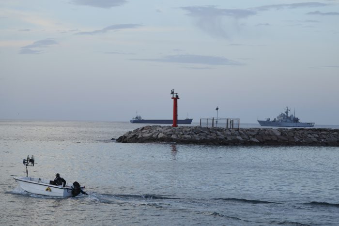 SHENGJIN, Albania (AP) — An Italian navy ship arrived Tuesday in Albania with 49 migrants intercepted in international waters for processing of their asylum applications at special Albanian centers, in the third such attempt following hurdles earlier raised by Italian courts.