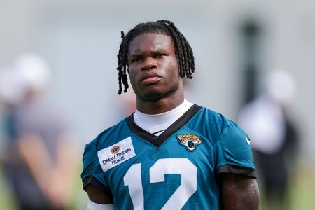 Hunter and 2024 first-round pick Brian Thomas Jr. rotated through reps on short comeback routes and in-cutting patterns in the opening portion of group position work. He briefly aligned with defensive backs during a special teams walkthrough without live reps.