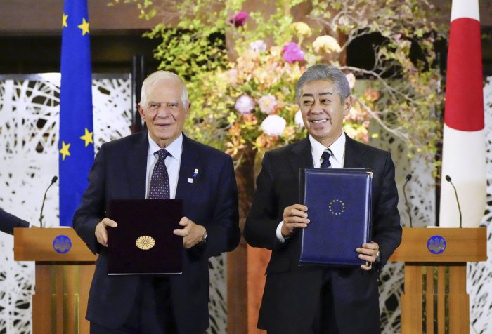 It is the first security partnership that the EU has concluded with an Indo-Pacific country, Japanese Foreign Minister Takeshi Iwaya and EU foreign policy chief Josep Borrell told reporters.