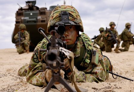 TOKYO (Reuters) – Japan’s defence ministry on Friday said it will invest in AI, automation and improving troop conditions to address a worsening recruitment shortfall that has left its forces understaffed amid a build up aimed at countering China’s growing military power.