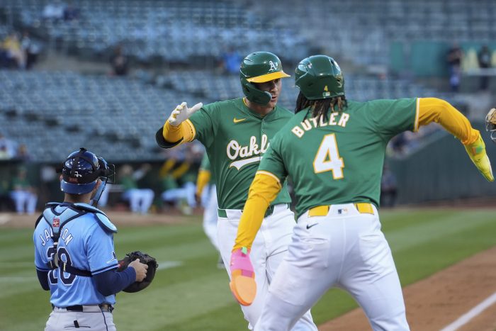 The A’s jumped out to an early lead in the first that they never relinquished. Butler singled to open the inning and, after Brent Rooker struck out, Bleday smashed a fastball to the right field bleachers.