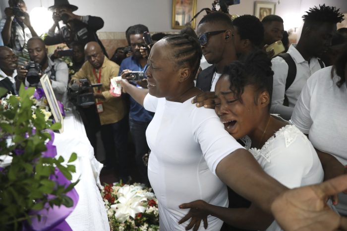 When the funeral ended, loved ones lifted Natoux’s coffin high into the air. One colleague placed his hand on the Haitian flag draped over it as wails filled the church.