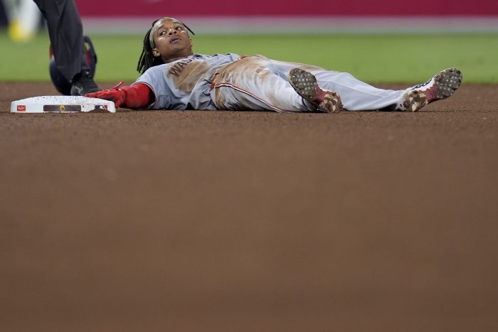 He left with a 3-2 lead after six innings but reliever Adrian Morejon gave up the tying run in the seventh. Abrams singled with one out, stole second base, advanced on Jesse Winker’s single and scored on Meneses’ single.