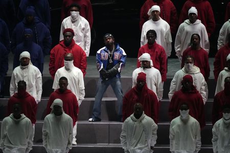 NEW ORLEANS (Reuters) – Rapper Kendrick Lamar entertained a packed stadium crowd and audiences around the world watching the Super Bowl on Sunday, teasing and then delivering his ubiquitous, Grammy-winning diss track “Not Like Us.”