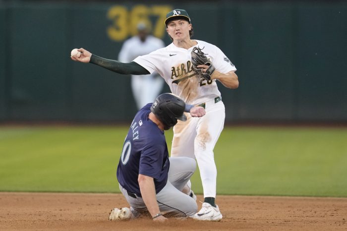 After the A’s reached Kirby for a run in the bottom of the inning — the first run allowed by a Mariners starter in four games — Rojas beat out a two-out infield single to drive in Dylan Moore.