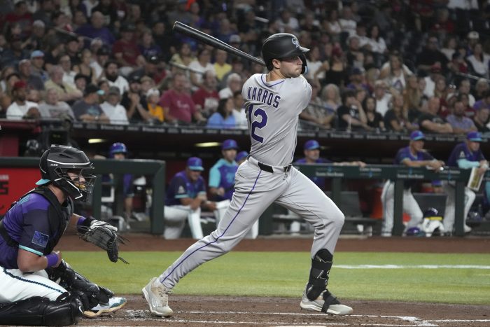 PHOENIX (AP) — Colorado Rockies third baseman Kyle Karros is off to a good start in the National League — just like his dad. The 23-year-old Karros — the son of 1992 National League Rookie of the Year Eric Karros — hit an RBI single in his first big-league plate appearance Friday night against the […]