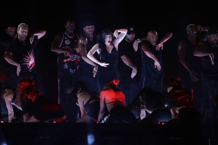 Lady Gaga performed her classic hits, including “Poker Face” and “Alejandro,” switching between an array of dresses including one with the colors of the Brazilian flag.
