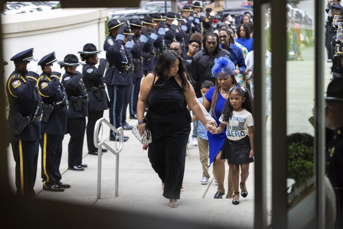 Hundreds of law enforcement officers from DeKalb County and the surrounding region filled the church. CDC employees also attended. Local officials and Georgia Gov. Brian Kemp attended. Rose’s young daughter leaned on his wife’s shoulder with blue bows in her hair and a shirt that said, “My daddy is my hero.”