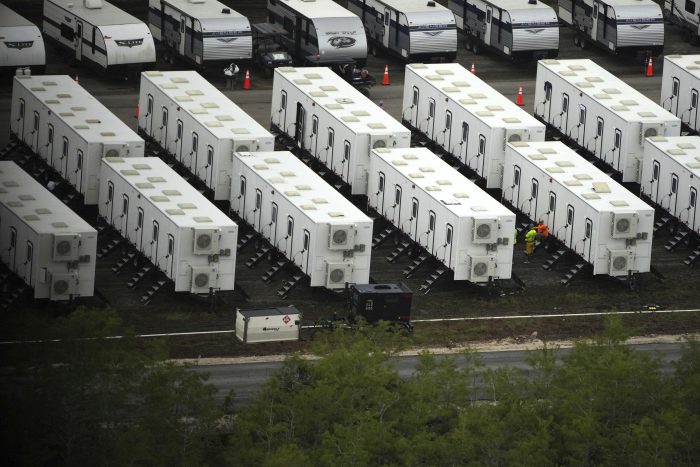 But detainees and their relatives and advocates have told The Associated Press that conditions are awful, with worm-infested food, toilets overflowing onto floors, mosquitoes buzzing around the fenced bunks, and air conditioners that sometimes shut off in the oppressive South Florida summer heat. One man told his wife that detainees go days without getting showers.