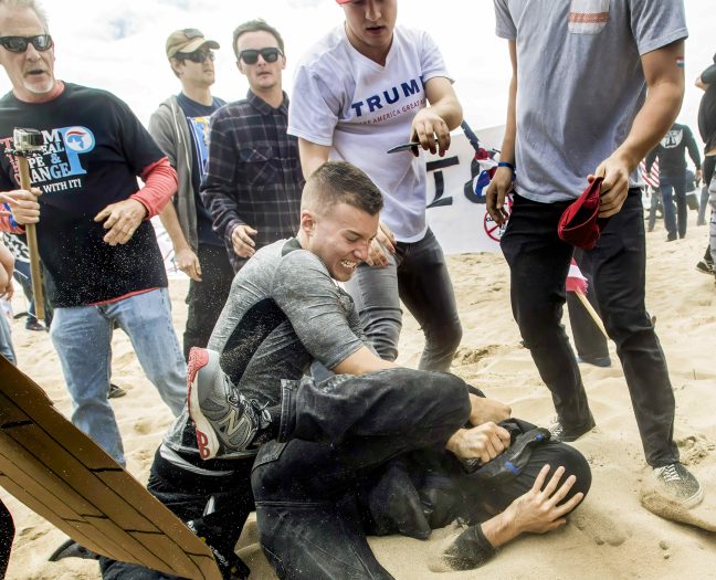 Prosecutors say Rundo co-founded the Rise Above Movement, which they describe as “a combat-ready, militant group of a new nationalist white supremacy and identity movement.” He and two others were accused of planning and engaging in violence at gatherings in Huntington Beach, Berkeley and San Bernardino in 2017.