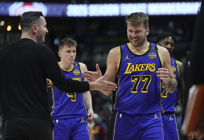Doncic was at the center of the Lakers’ attack from the start against Dallas. He missed a 3-pointer after the opening tip, but blocked a shot on Dallas’ first possession before adding a layup and an assist on a 3-pointer by James moments later.