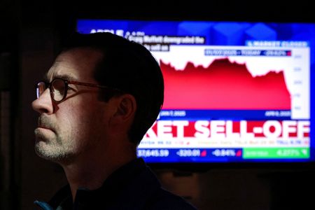 LONDON (Reuters) – Global markets were pummelled on Wednesday as President Donald Trump’s eye-watering 104% tariffs on China took effect, and a savage selloff in U.S. bonds sparked fears that foreign funds were fleeing U.S. assets.