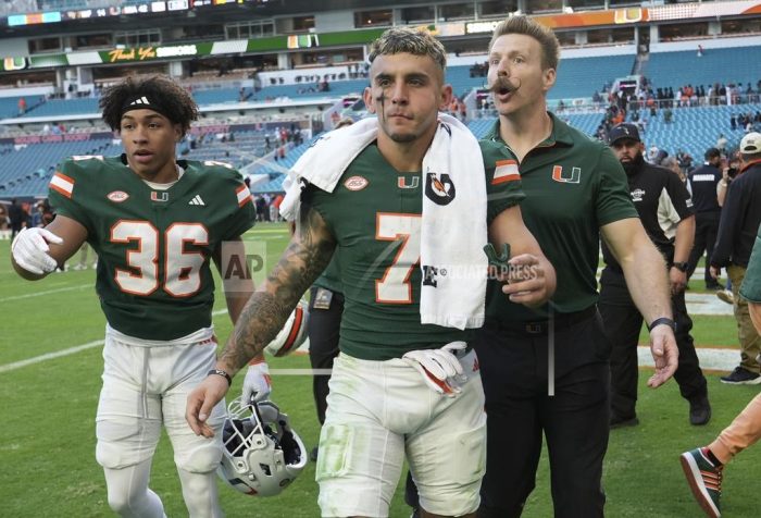 Miami’s playoff hopes took an all-but-final nosedive while Alabama’s got a boost Tuesday night in the last rankings before the 12-team College Football Playoff bracket is set next weekend. The Hurricanes (10-2) moved down six spots to No. 12 — the first team out of the projected bracket after suffering their second loss of the […]