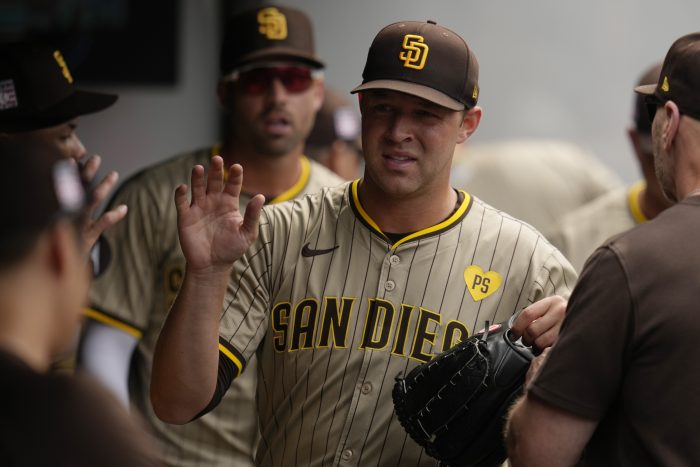 “Maybe I’m being greedy, but I think he got a little unlucky with the bloop single,” said Higashioka, who also was in the Soto trade. “He was super sharp and easily could have gone seven scoreless. It’s always nice to catch him because I know how good he is.”