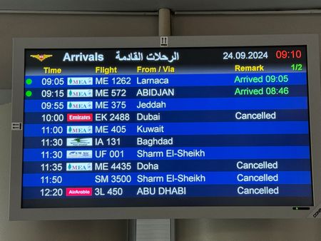 BEIRUT (Reuters) – More than 30 flights to and from Beirut on Tuesday have been cancelled, according to the Rafic Hariri International Airport’s website.